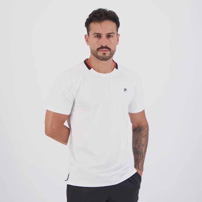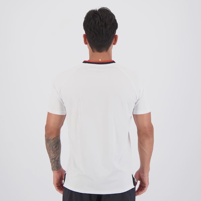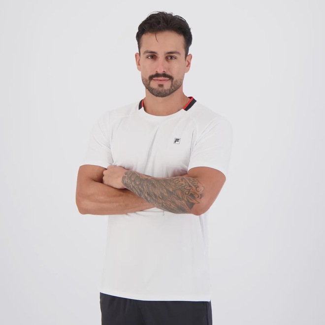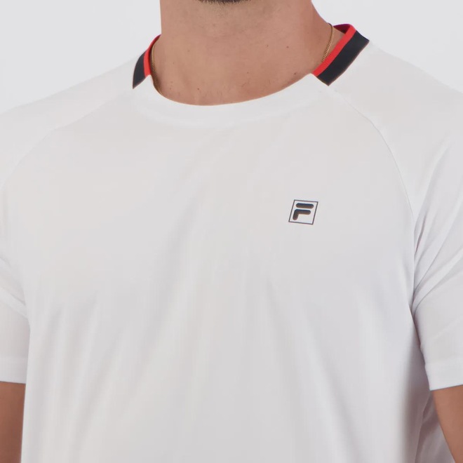 Composição: 91% Poliéster e 09% Elastano Cor predominante: Branca Indicada para: Treino Gênero: Masculino Origem: Nacional Logo: Estampada Manga: Curta Gola: Careca Dimensões aproximadas (A x L): P: 72 x 49 cm M: 73 x 52 cm G: 75 x 57 cm GG: 76 x 61 cm EG: 78 x 63 cm EEG: 80 x 65 cm