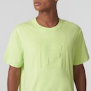 Camiseta masculina confeccionada em meia malha de algodão sustentável com elastano.