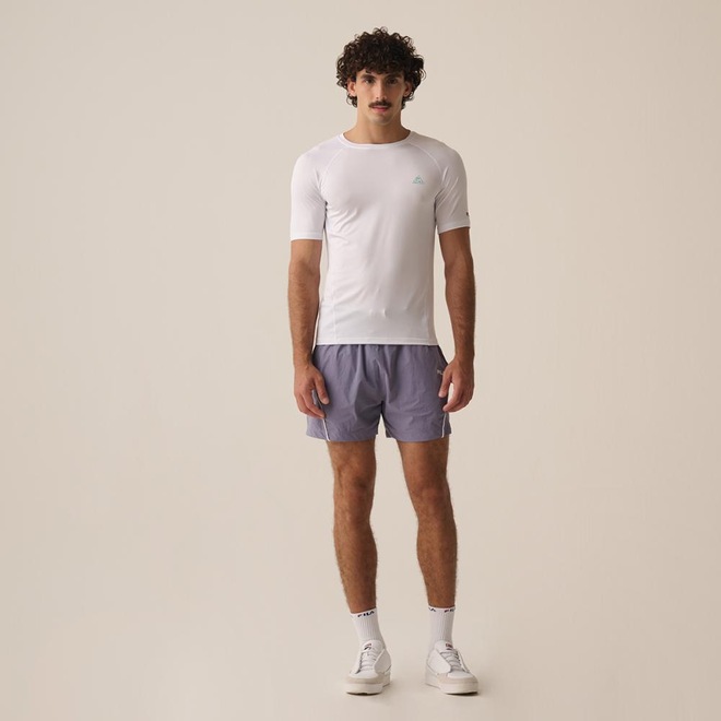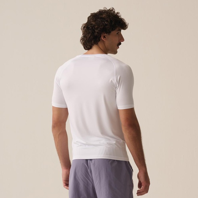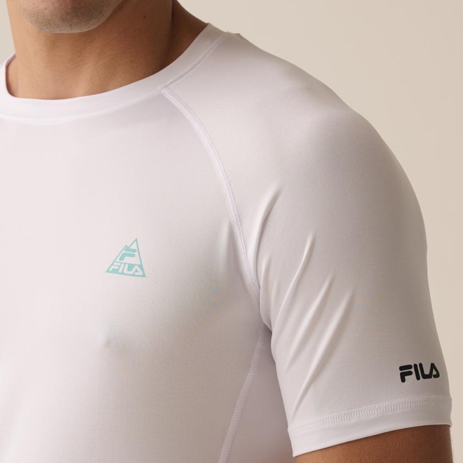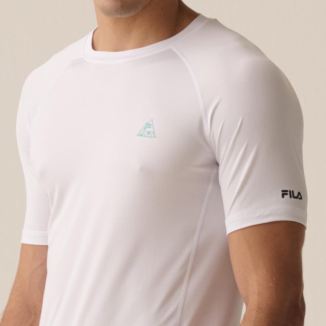 Camiseta masculina confeccionada em malha de poliéster com elastano. Modelagem slim fit, ajustada ao corpo, com manga curta raglan e gola careca. Seu tecido contém 2 tecnologias: FLOW, que oferece secagem rápida e mantém o corpo na temperatura ideal para a prática esportiva, e UV PROTECTION, que fornece proteção solar FPS 50+ dos raios UVA e UVB. Possui laterais deslocadas para frente, que proporcionam maior conforto e diminui o atrito com a pele, e logo Fila Trek em termo aplicado na parte frontal esquerda superior.ref: M17LWB