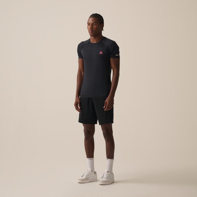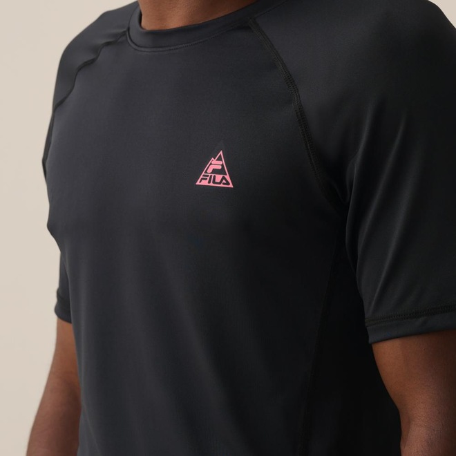 Camiseta masculina confeccionada em malha de poliéster com elastano. Modelagem slim fit, ajustada ao corpo, com manga curta raglan e gola careca. Seu tecido contém 2 tecnologias: FLOW, que oferece secagem rápida e mantém o corpo na temperatura ideal para a prática esportiva, e UV PROTECTION, que fornece proteção solar FPS 50+ dos raios UVA e UVB. Possui laterais deslocadas para frente, que proporcionam maior conforto e diminui o atrito com a pele, e logo Fila Trek em termo aplicado na parte frontal esquerda superior.ref: M17LWC