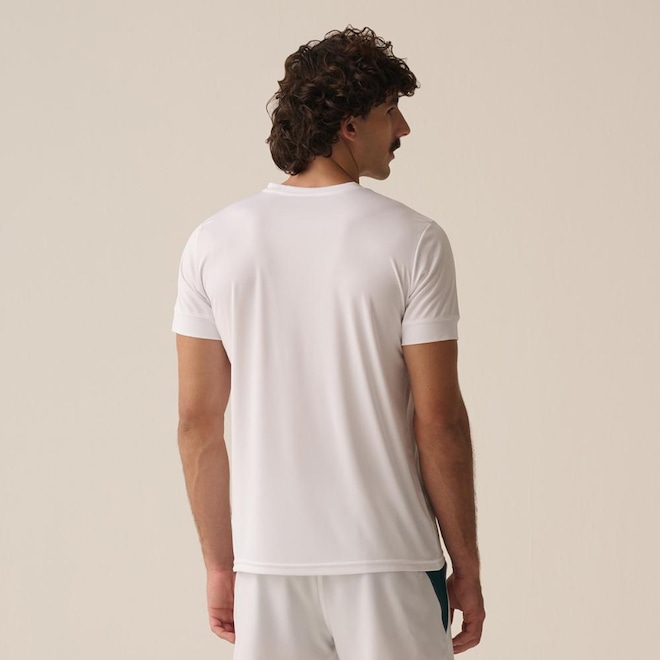 - Sobre o produto Camiseta masculina confeccionada em malha de poliéster reciclado com elastano. Indicado para jogar tennis, o modelo gola careca e manga curta conta com as tecnologias UV PROTECTION, que garante proteção solar FPS 50+ e FLOW, que mantém o corpo na temperatura ideal.- ref: M17LWV
