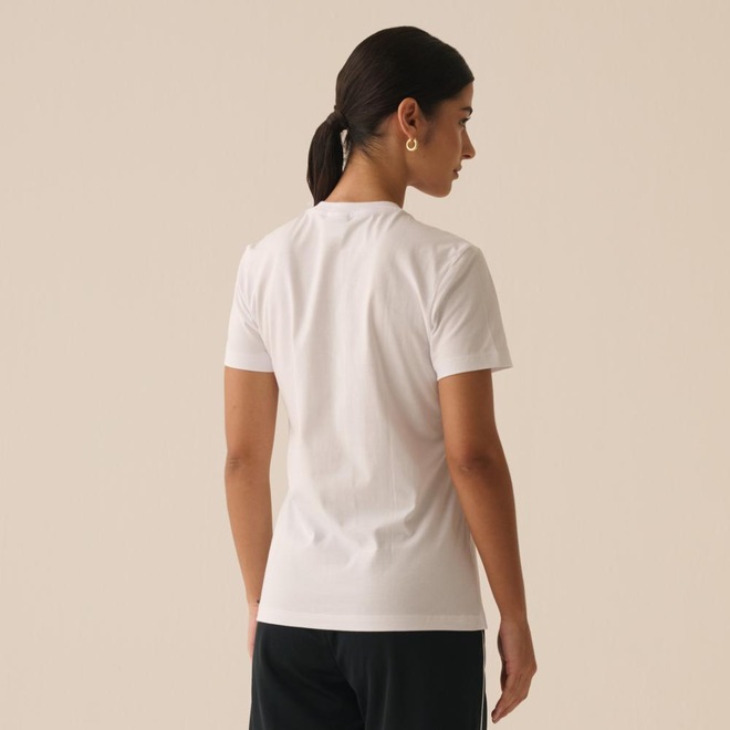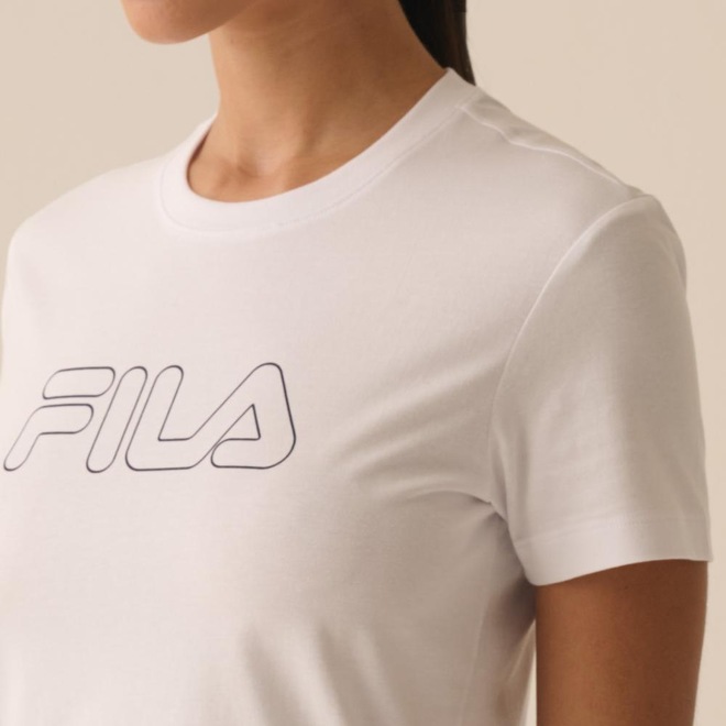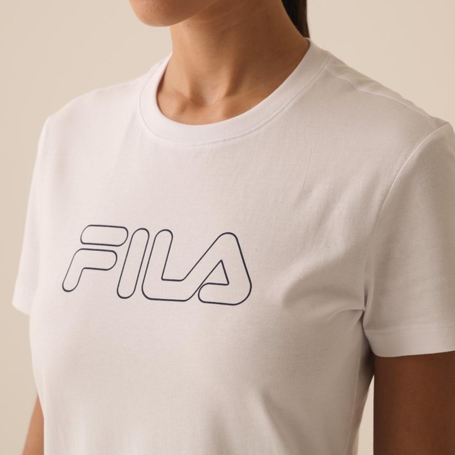 Camiseta feminina confeccionada 100% em algodão, na modelagem comfort (mais solta ao corpo) e manga curta. Traz maxi logo FILA Letter Outline e acabamento pespontado na gola careca.ref: M17LX6