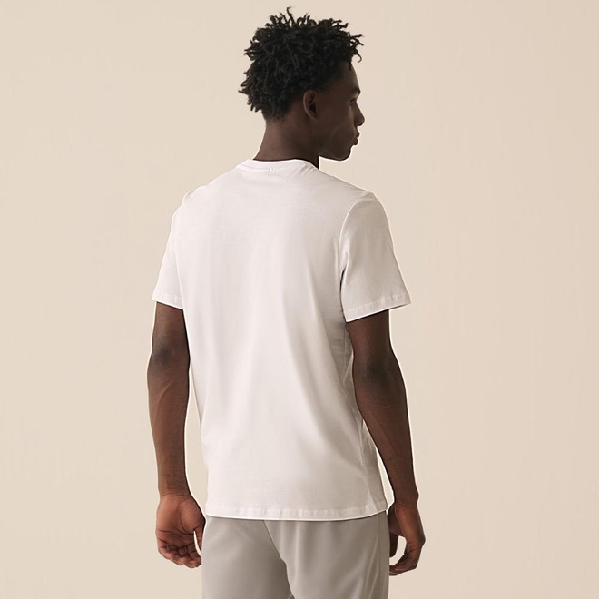 Camiseta masculina confeccionada em meia malha premium de algodão. Possui modelagem regular com manga curta, gola careca em ribana e mini patch FILA Linear bordado na parte frontal superior esquerda.