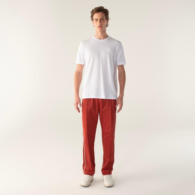 Camiseta masculina produzida em meia malha de poliéster e algodão texturizada, com efeito que remete ao tricô. Inspirada no Grand Turismo, traduz a elegância dinâmica do norte da Itália. A modelagem regular se destaca pelas mangas com acabamento em ribana. O F-Box bordado no peito adiciona um detalhe sofisticado e autêntico ao visual.ref: M17MSS