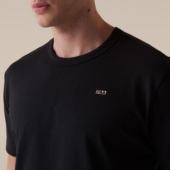 Camiseta masculina feita em malha de algodão na modelagem regular. Possui gola em ribana, pesponto duplo e detalhes como ombros tombados, barra traseira levemente mais longa, abertura lateral e recorte nas costas com trançador. O patch FILA Linear no peito esquerdo completa o design atemporal.ref: M17LXH