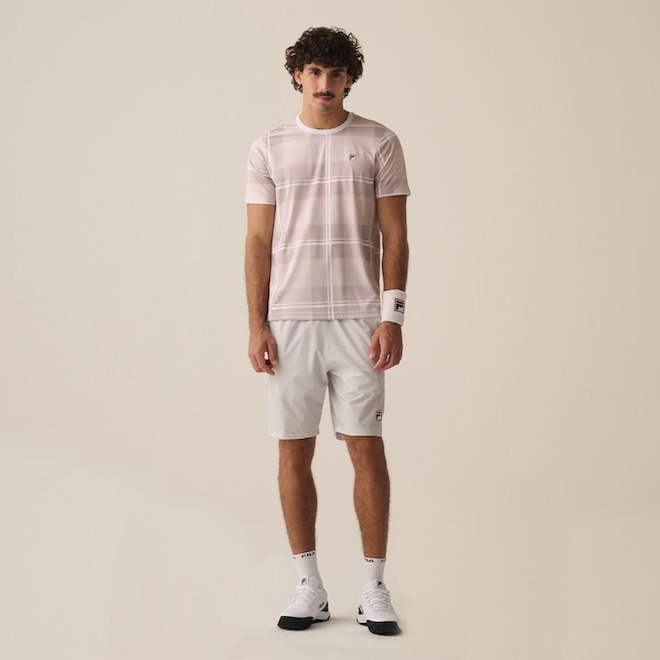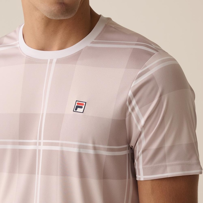A Camiseta Masculina FILA Regular Tennis Graphic Player é feita em malha de poliéster com elastano, oferecendo conforto e funcionalidade. Possui modelagem regular, com estampa sublimada no tecido branco, exceto na gola, e acabamento de 2 agulhas na barra para maior durabilidade. O tecido conta com proteção solar fator 50+ e tecnologia Flow e sustentável. É finalizada com o patch F-Box FILA aplicado no peito, destacando a assinatura da marca.ref: M17LXL