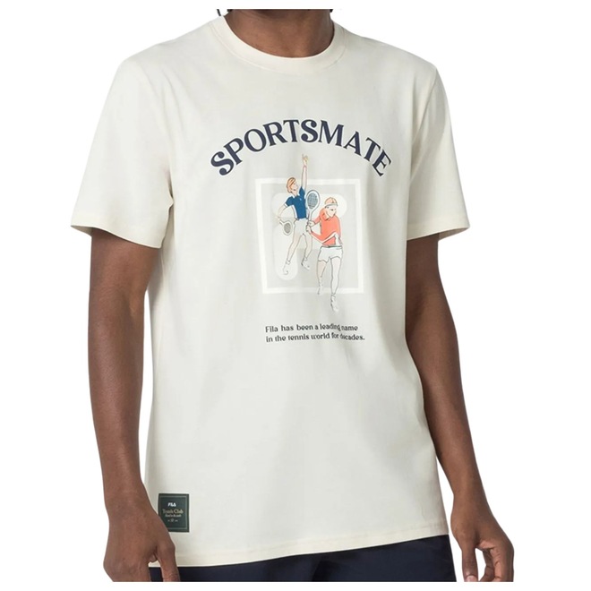 A Camiseta Masculina Fila TC Sportmate, com estampa, traz a tradição das quadras de tênis para o estilo de vida cotidiano. Fabricada em malha de algodão sustentável com elastano, a peça possui certificação ecológica BCI, corte confortável (mais folgado no corpo) com gola redonda em ribana e mangas curtas.