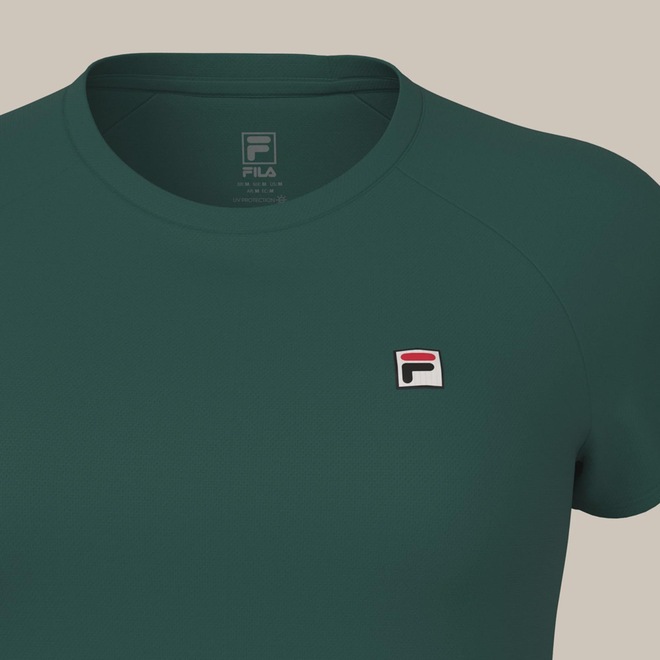 Camiseta feminina confeccionada em malha de poliéster reciclado com elastano. Modelagem acinturada com manga curta raglan e gola careca. Produto ecológico elaborado para causar menos impacto ao meio ambiente, colaborando com a sustentabilidade do planeta. Seu tecido contém as tecnologias UV PROTECTION, que oferece proteção solar FPS 50+ dos raios UVA e UVB, e a FLOW, que proporciona rápida secagem, mantendo o corpo na temperatura ideal para a prática esportiva. Nome: Camiseta Fila Tennis Basic Feminina Indicado para: Tennis; Treino; Dia a Dia; Composição: 95% Poliéster; 5% Elastano; Peso: 100g (Referente ao tamanho M) Garantia do Fabricante: Contra Defeito de Fabricação