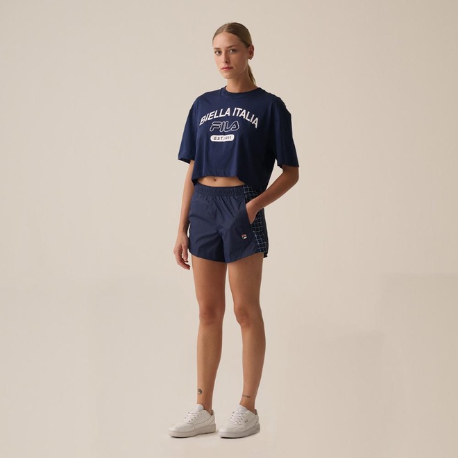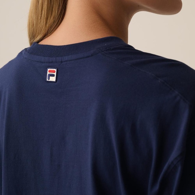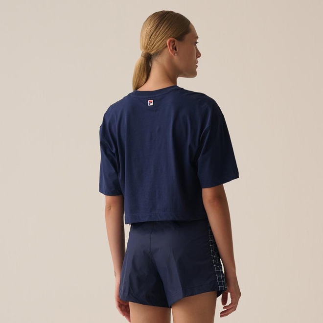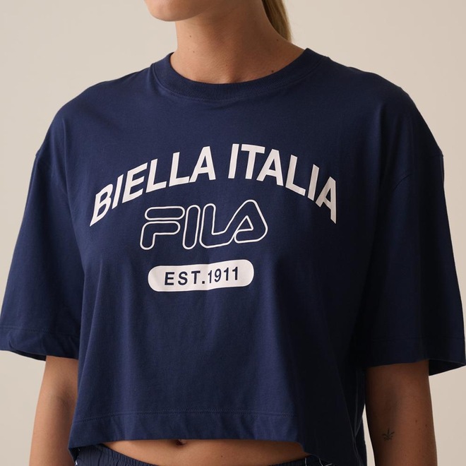 Camiseta feminina confeccionada em meia malha sustentável de algodão, com selo BCI (Better Cotton Initiative). Modelagem comfort, mais solta no corpo, com comprimento cropped e manga curta. Produto ecológico com processo de lavagem com amaciante natural de arroz, elaborado para causar menos impacto ao meio ambiente, proporcionar boa capacidade de transpiração e toque macio. Possui gola careca em ribana, ombros deslocado para trás com acabamento pespontado, cavas amplas pespontadas, maxi estampa Fila Biella Italia em silk centralizada na parte frontal e patch F-Box bordado centralizado abaixo da gola traseira.ref: M17LYC