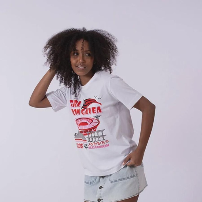 Com modelagem oversized, a Camiseta Flamengo Gávea traz uma estampa de apelo casual inspirada na essência da flamenguista carioca. Confeccionada em Meia Malha 30.1, oferece conforto, leveza e estilo para o dia a dia com identidade rubro-negra.