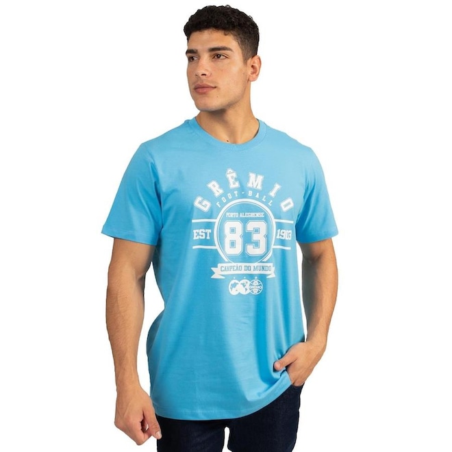 A cor azul claro, tão característica e emblemática do Grêmio, adorna esta camiseta, destacando-a como um verdadeiro item de colecionador para os fãs mais exigentes. Seu design clássico é acentuado pela gola careca e pelas mangas curtas, garantindo um ajuste confortável e elegante em todas as ocasiões.