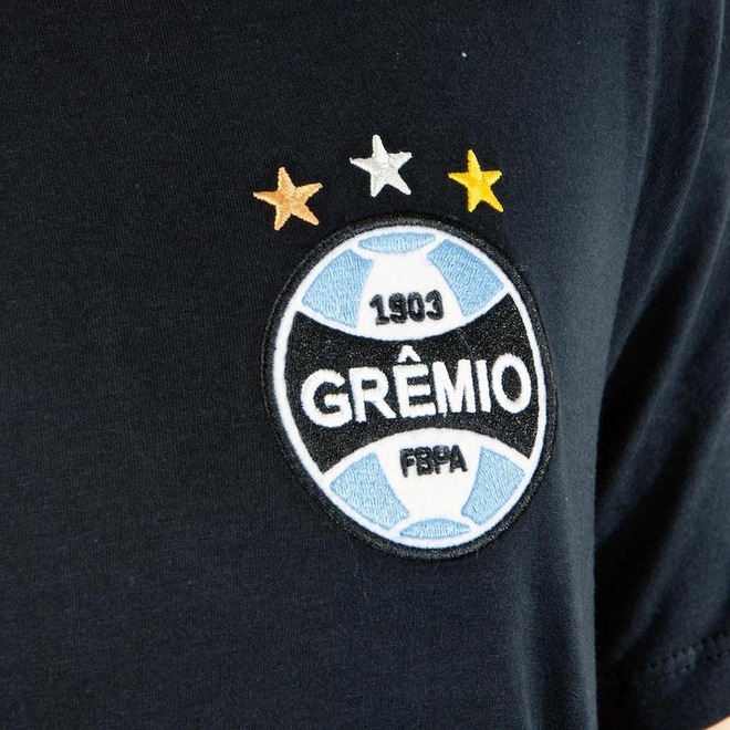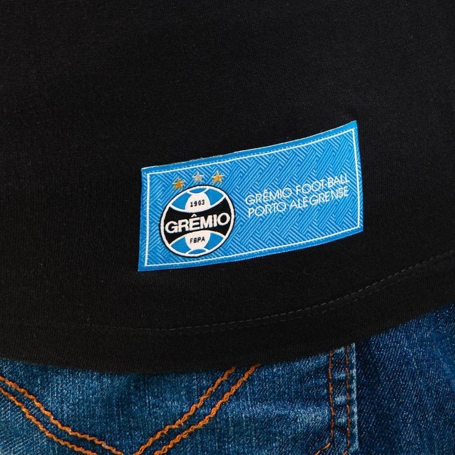 Logo Bordado do Grêmio: O distintivo do Grêmio é bordado com precisão na camiseta, exibindo com orgulho as cores e símbolos que representam a história vitoriosa do clube.