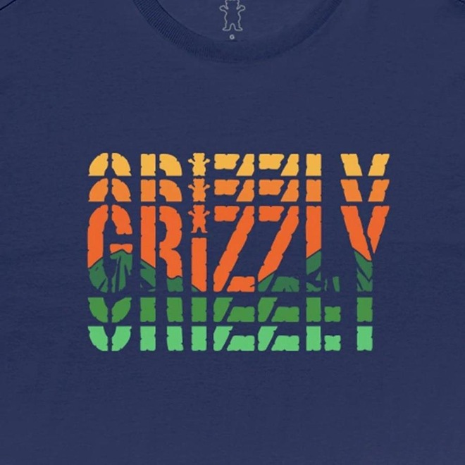 Camiseta Grizzly meia malha 26/1, modelagem regular, silk frontal e etiqueta personalizada na barra.