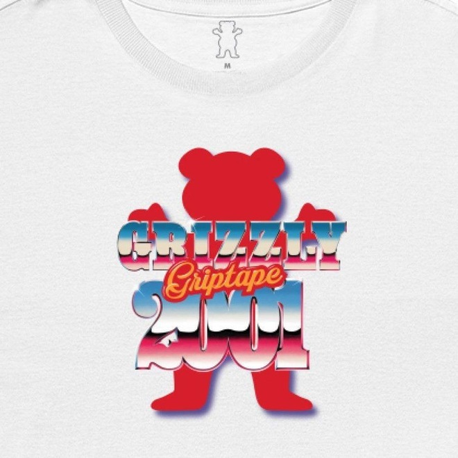 Camiseta Grizzly, meia malha 26/1, estampa frontal, modelagem regular e etiquetas personalizadas.