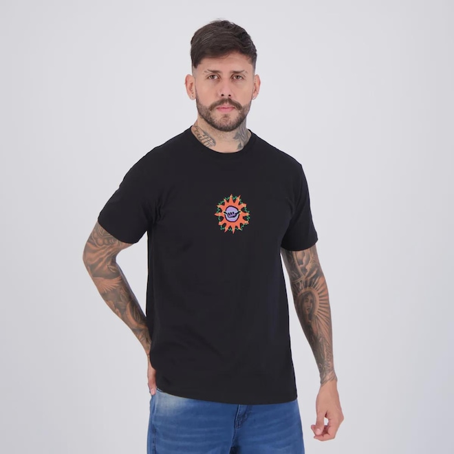 Composição: 100% Algodão Cor predominante: Preta Indicado para: Casual Gênero: Masculino Origem: Nacional Logo: Estampada Manga: Curta Gola: Careca Dimensões aproximadas (A x L): P: 70 x 52 cm M: 72 x 54 cm G: 74 x 56 cm GG: 76 x 58 cm