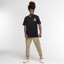 Conta com mangas curtas e sua gola é careca com tira interna.