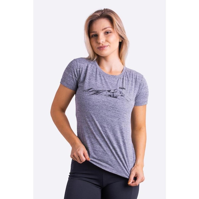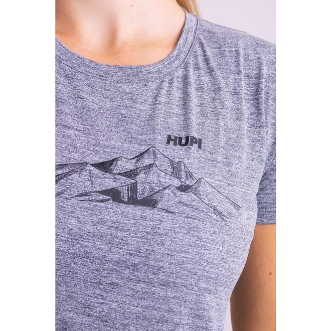 Camiseta HUPI Miragem Babylook Feminina Manga Curta Cinza Mescla