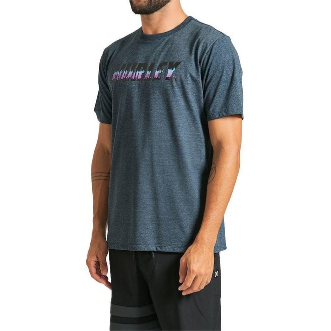 Camiseta Hurley manga curta com meia malha 30.1, gola rebatida, estampa frontal localizada à base d''água e etiqueta clips na barra.