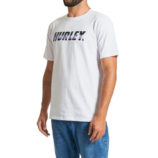 Camiseta Hurley manga curta com meia malha 30.1, gola rebatida, estampa frontal localizada à base d''água e etiqueta clips na barra.