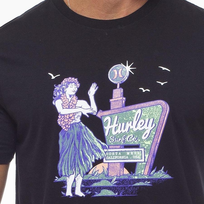 Camiseta Hurley Silk meia malha 30.1, gola rebatida, estampa localizada na parte frontal a base d''água, modelagem regular e etiqueta clips na barra.
