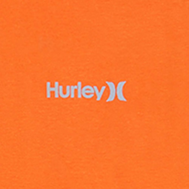 Camiseta Hurley feita em meia malha 30.1, gola rebatida, estampa localizada base d'agua e etiqueta clips ONE&ONLY na barra.