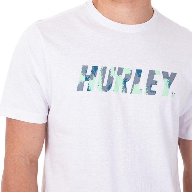 Camiseta Hurley meia malha 30.1, gola rebatida, estampa localizada base d''água e etiqueta clips na barra.