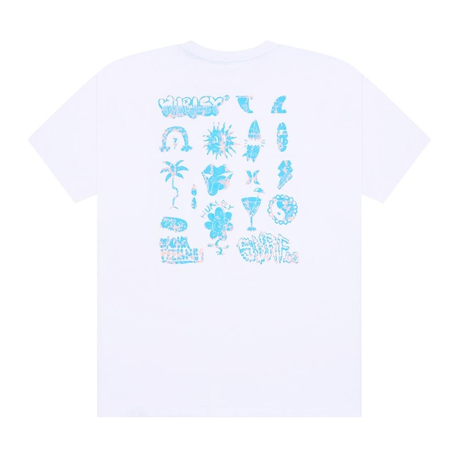 Camiseta Hurley feita em meia malha 30.1, gola rebatida, estampa localizada base d'agua e etiqueta clips ONE&ONLY na barra.