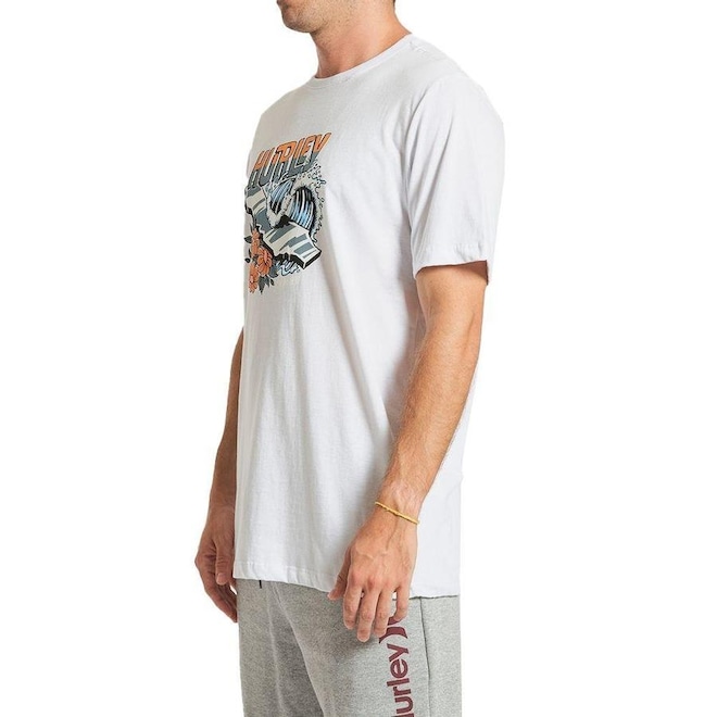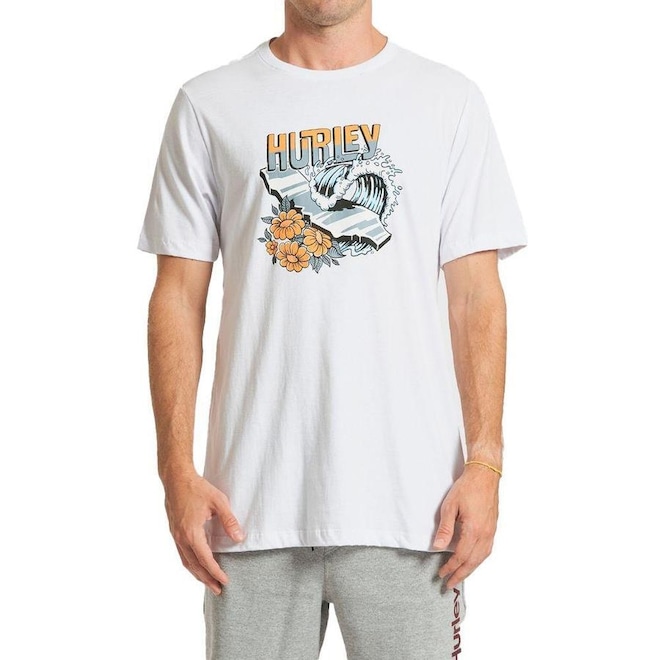 Camiseta Hurley meia malha 30.1, com gola rebatida, estampa localizada a base d''água e etiqueta clips na barra.