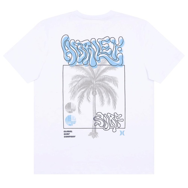 Camiseta Hurley feita em meia malha 30.1, gola rebatida, estampa localizada base d'agua e etiqueta clips ONE&ONLY na barra.