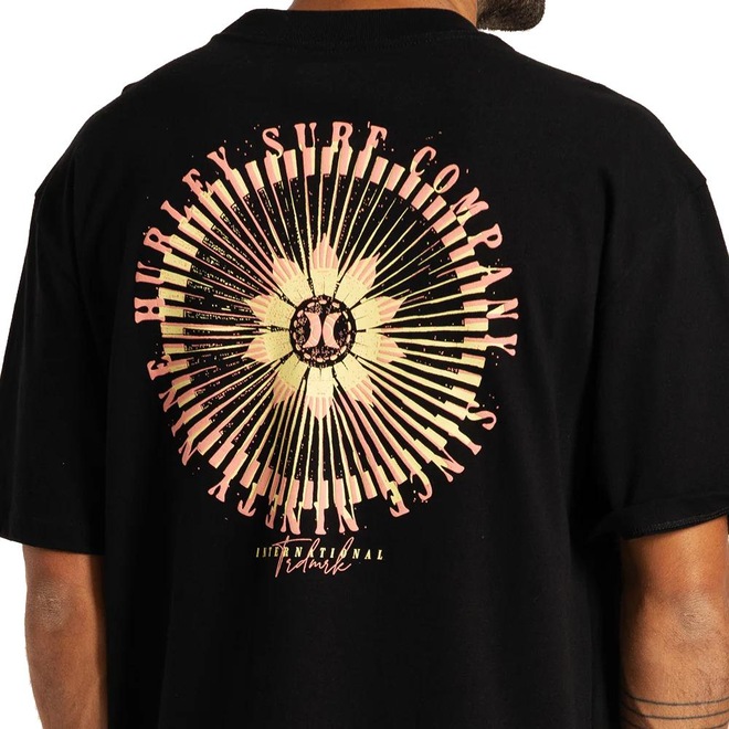 Camiseta Hurley feita em modelagem maxfit, estampa frente e costas, etiqueta ONE&ONLY na lateral e etiquetas personalizadas.