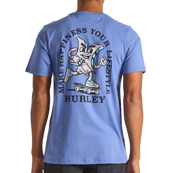 Camista Hurley feita em meia malha 30.1, gola rebatida, estampa localizada base d'agua e etiqueta clips ONE&ONLY na barra.