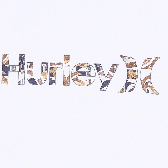 Camiseta Hurley feita em meia malha 30.1, gola rebatida, estampa localizada base d'agua e etiqueta clips ONE&ONLY na barra.