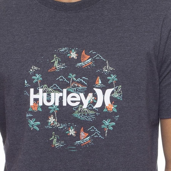 Camiseta Hurley Silk meia malha 30.1, gola rebatida, estampa localizada na parte frontal a base d''água, modelagem regular e etiqueta clips na barra.