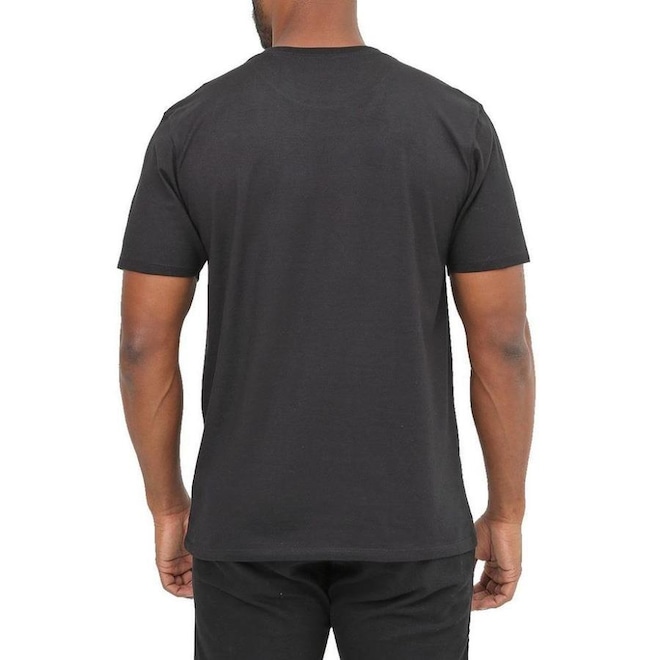 Camiseta Silk, meia malha 30.1, gola rebatida, estampa localizada base dágua e etiqueta clips na barra.