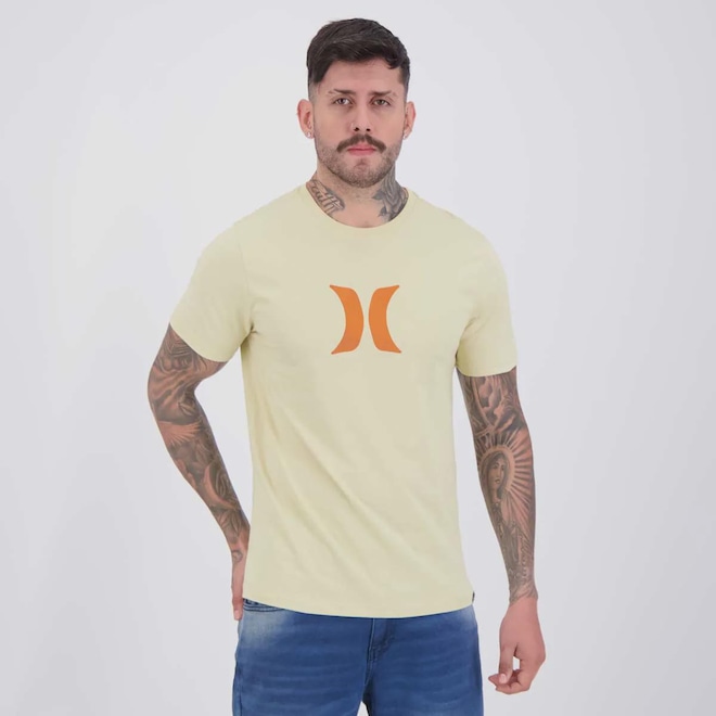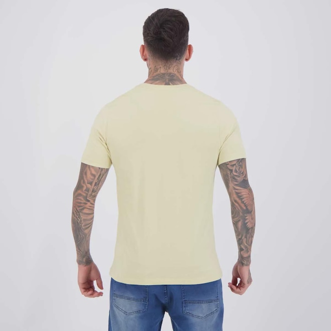 - Sobre o produto - Composição: 100% Algodão Cor predominante: Bege Indicado para: Casual Gênero: Masculino Origem: Nacional Logo: Estampada Manga: Curta Gola: Careca Dimensões aproximadas (A x L): P: 72 x 50 cm M: 74 x 52 cm G: 76 x 54 cm GG: 78 x 56 cm - ref: M17V5A