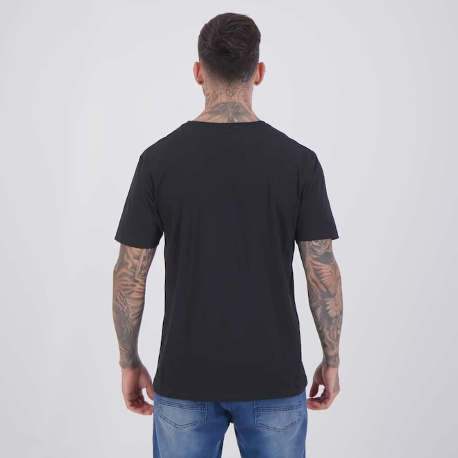 Composição: 100% Algodão Cor predominante: Preta Indicado para: Casual Gênero: Masculino Origem: Nacional Logo: Estampada Manga: Curta Gola: Careca Dimensões aproximadas (A x L): P: 73 x 53 cm M: 75 x 55 cm G: 77 x 57 cm GG: 79 x 59 cm