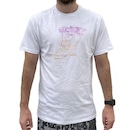 Camiseta Silk, meia malha 30.1, gola rebatida, estampa localizada base dágua e etiqueta clips na barra.