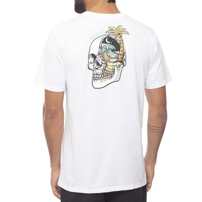 Camiseta silk meia malha 30.1, modelagem regular, estampa localizada a base d''água frente e costas e etiqueta clips na barra.