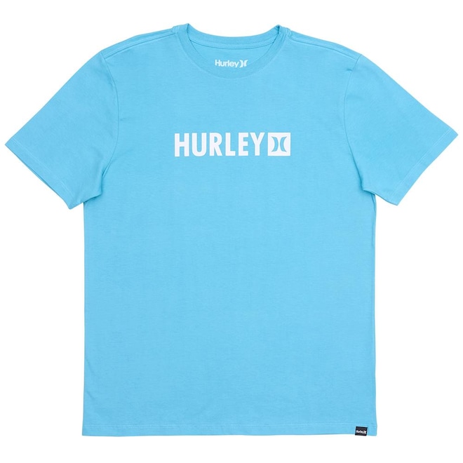 Camiseta Hurley feita em meia malha 30.1, gola rebatida, estampa localizada base d'agua e etiqueta clips ONE&ONLY na barra.