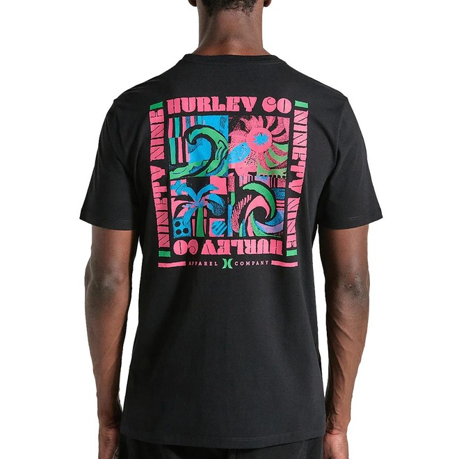 Camiseta Hurley feita em meia malha 30.1, gola rebatida, estampa localizada base d'agua e etiqueta clips ONE&ONLY na barra.