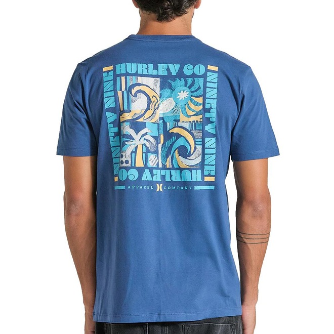Camiseta Hurley feita em meia malha 30.1, gola rebatida, estampa localizada base d'agua e etiqueta clips ONE&ONLY na barra.
