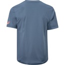 Possui mangas curtas, sua gola é careca com tira interna e a estampa é personalizada.