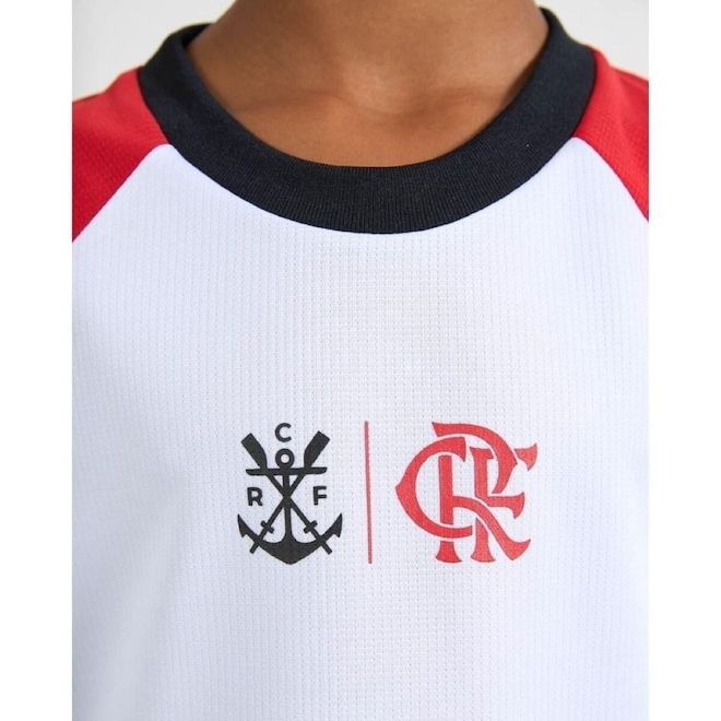 Confeccionada em poliéster de alta qualidade, o tecido é leve, respirável e oferece ótimo caimento no corpo, permitindo liberdade de movimentos em todas as brincadeiras. O design é destaque: com o escudo do Flamengo estampado em destaque no peito e o nome do clube inserido de forma sutil e estilosa, a camisa transmite orgulho e identidade rubro-negra.