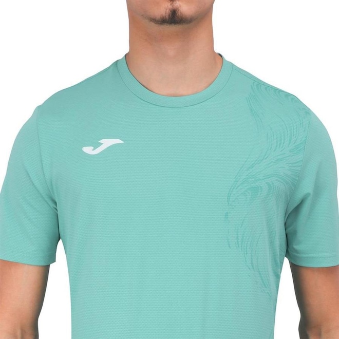 - Detalhamento: Manga curta , logo Joma emborrachado estampado na altura do busto do lado direito, barra posterior alongada com aberturas nas laterais proporcionando liberdade dos movimentos, camiseta na cor com tecido em Jacquard texturizado e estampa abstrata em tom mais escuro, tecido leve e respirável;