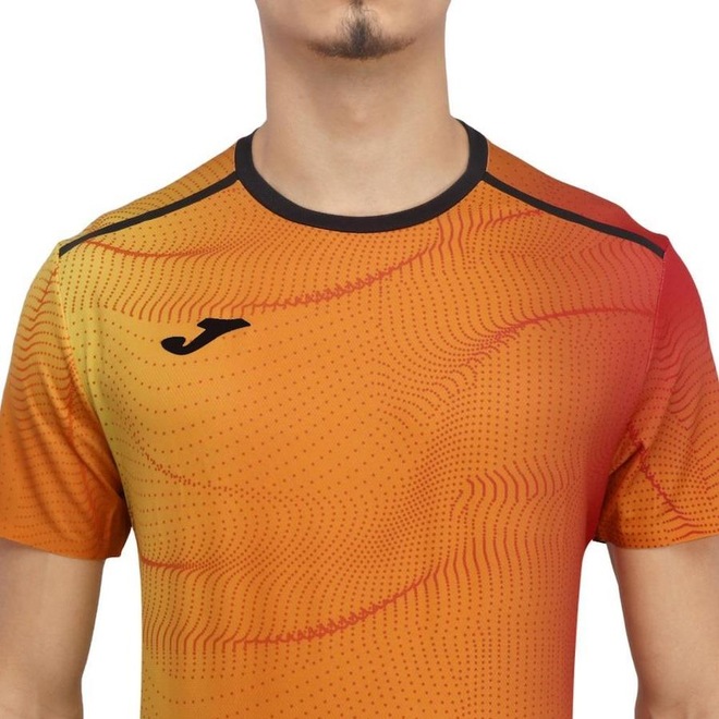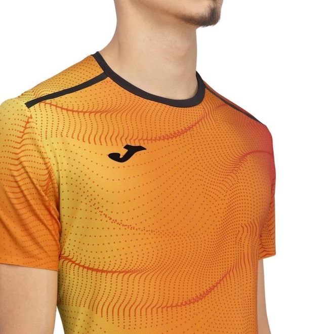 - Detalhamento: Gola careca, manga curta, logo Joma emborrachado estampado na altura do busto do lado direito, tecido com microperfurações em pontos estratégicos proporcionando respirabilidade à pele, camiseta com corte assimétrico sendo a parte de trás mais longa e aberturas na laterais onde proporciona mais liberdade nos movimentos;