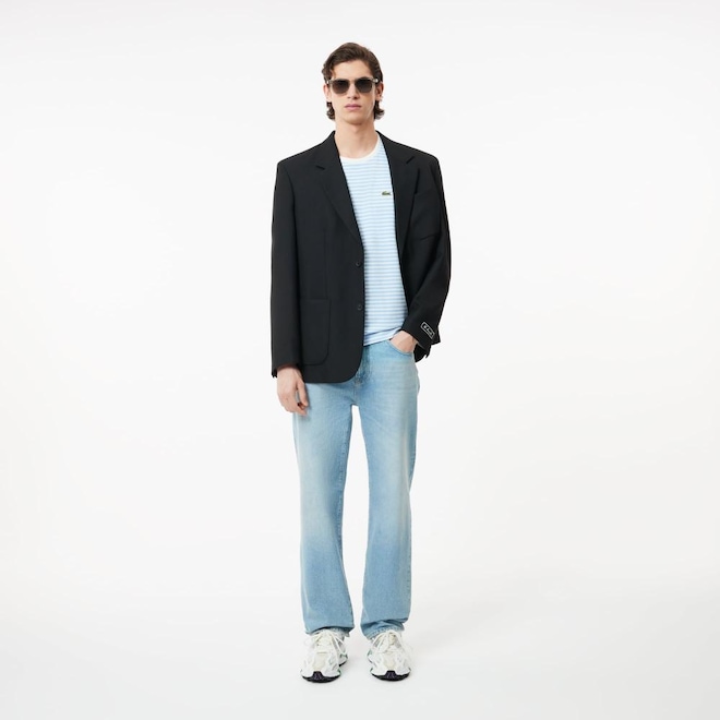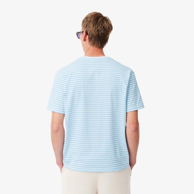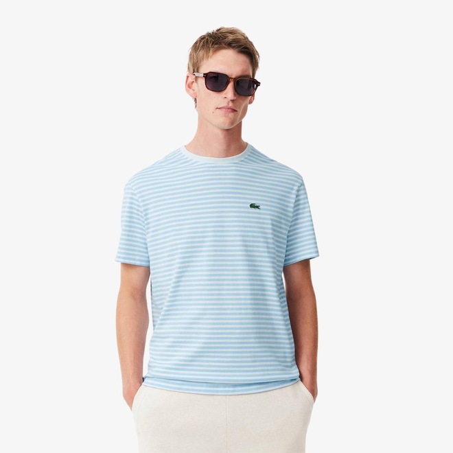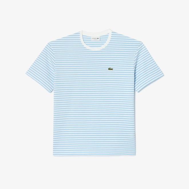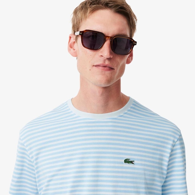 Tecido de algodão. Gola redonda. Clássico, comfortable fit, ombros caídos. Crocodilo bordado no peito.