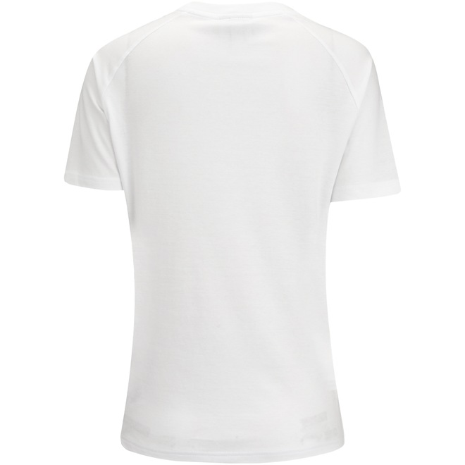 A camiseta masculina possui gola careca com detalhe canelado e tira interna que diminui o atrito de contato.