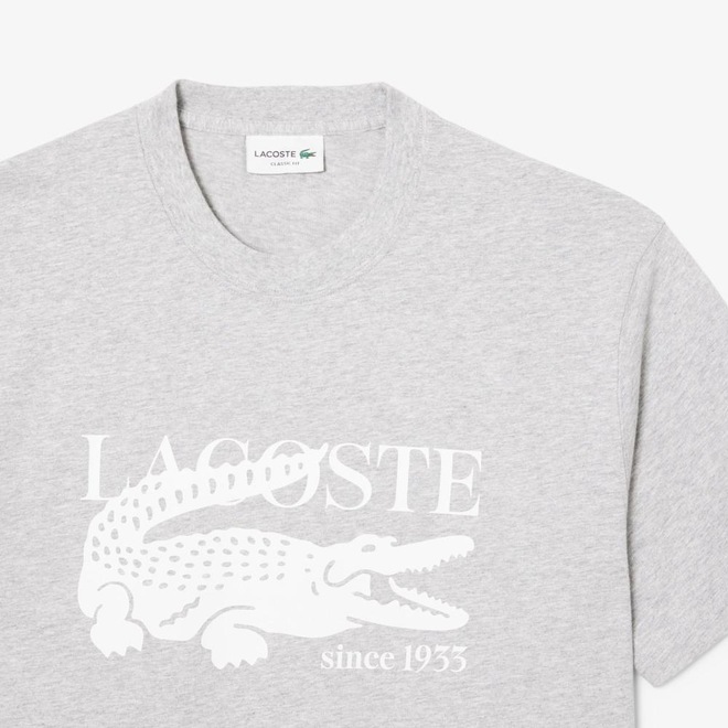 A essência da Lacoste traduzida em conforto absoluto. Esta camiseta é confeccionada em malha de algodão premium de gramatura leve, ideal para quem busca frescor ininterrupto e um toque suave sobre a pele. O caimento Classic Fit respeita a silhueta masculina, oferecendo uma elegância atemporal sem abrir mão da liberdade de movimento. No peito, o legado de nove décadas ganha vida em uma estampa exclusiva que funde o nome da marca ao icônico crocodilo — um toque de modernidade para um clássico indispensável.
