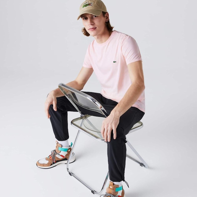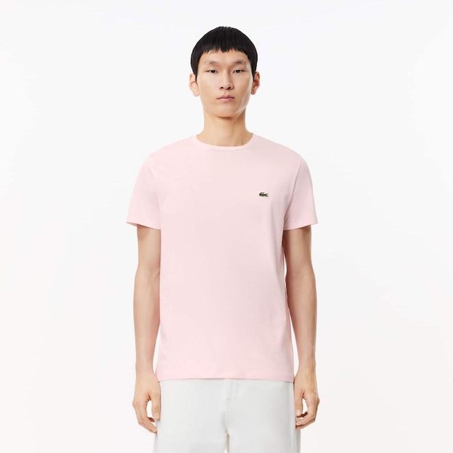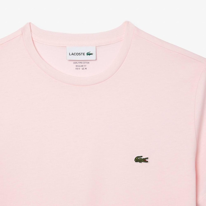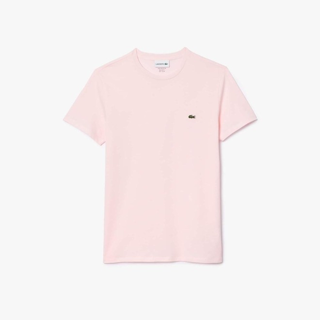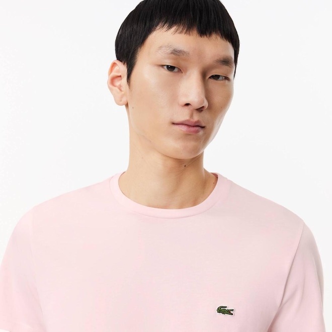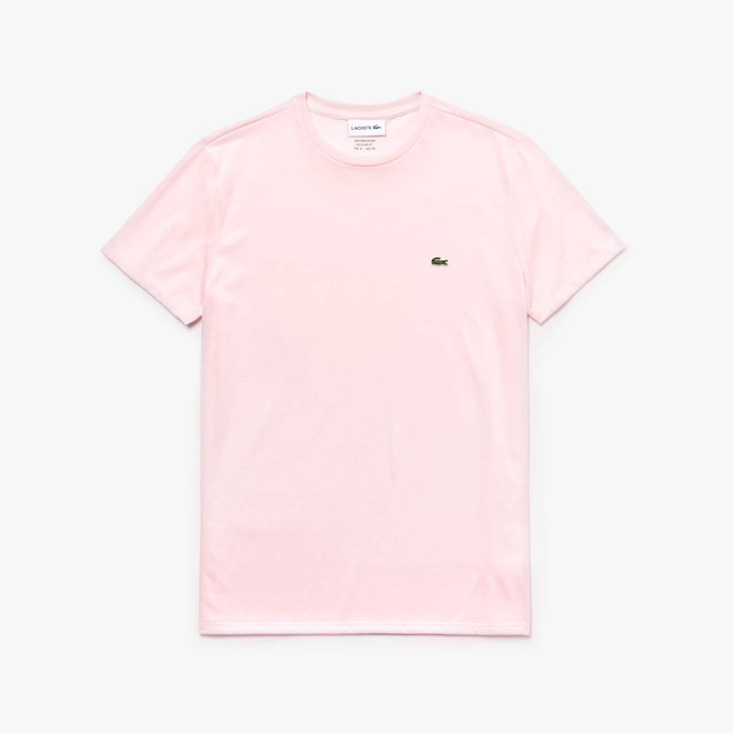 Jérsei de algodão Pima. Gola redonda. Regular fit. Marca do crocodilo em transfer e forro na orla da gola. Marca do crocodilo bordada no peito, na cor verde.