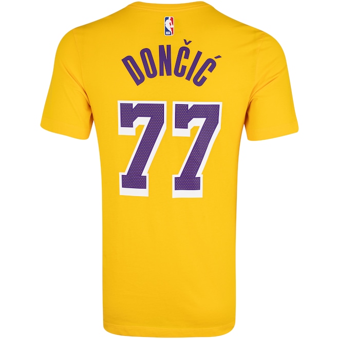 A camiseta Los Angeles Lakers masculina é de mangas curtas, com gola careca e tira interna em tecido que ajuda a diminuir o atrito de contato com a costura.